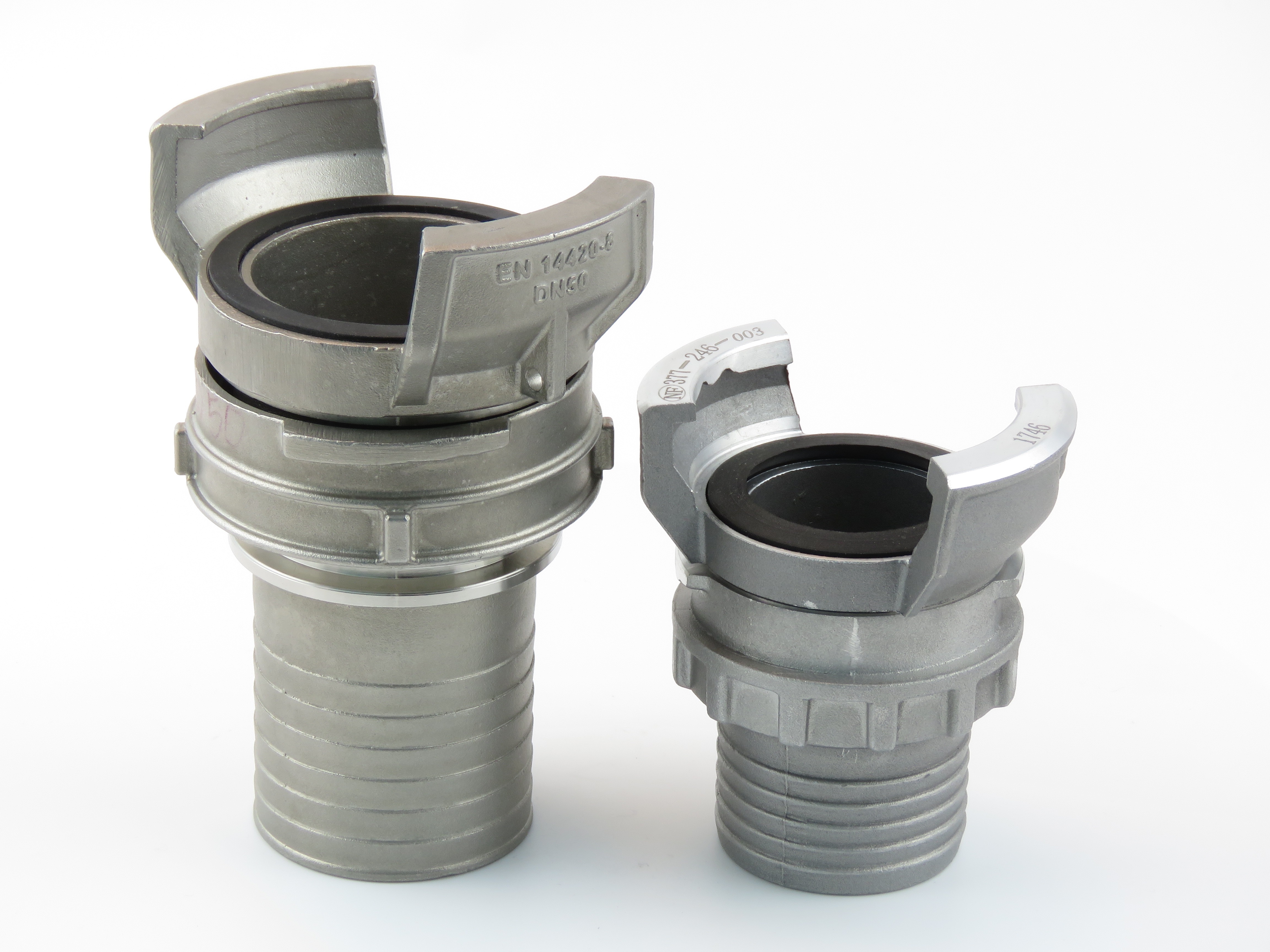 DIN Guillemin couplings are provided with smooth and serrated hose tail, internal and external G thread, butt welding end and plugs wiht chain and S hook.